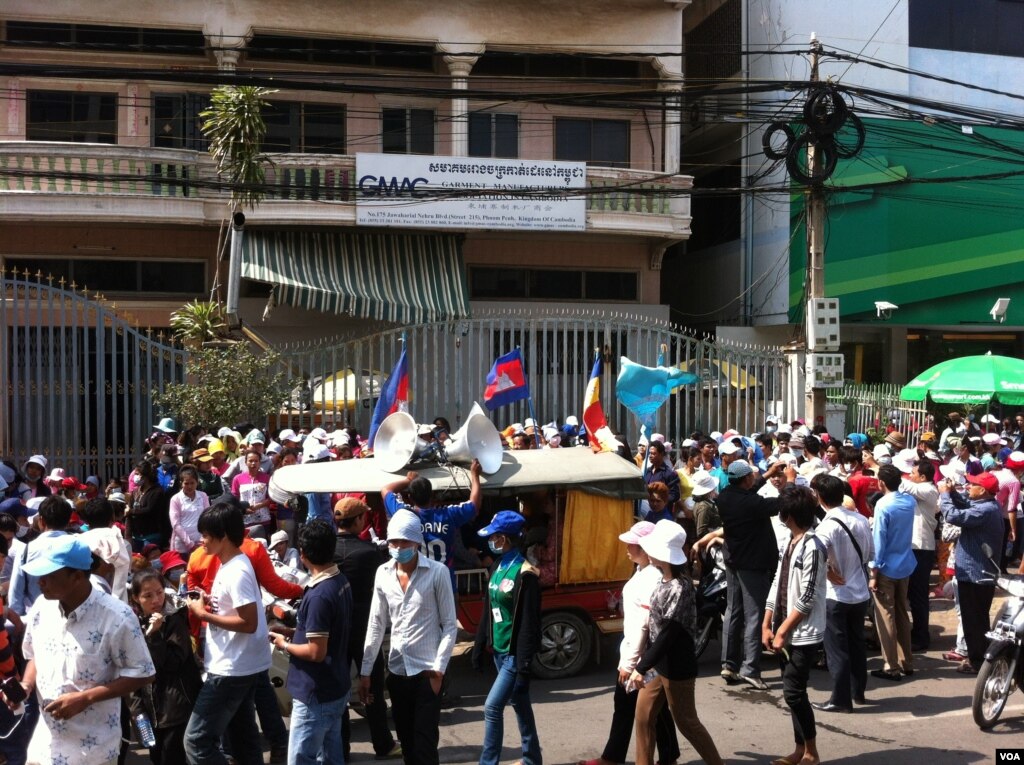 ​នៅមុខ​សមាគមរោងចក្រ​កាត់ដេរ ​កម្មករ​កាត់ដេរ​ទាមទារដំឡើង​ប្រាក់ខែ​១៦០ដុល្លារ។​