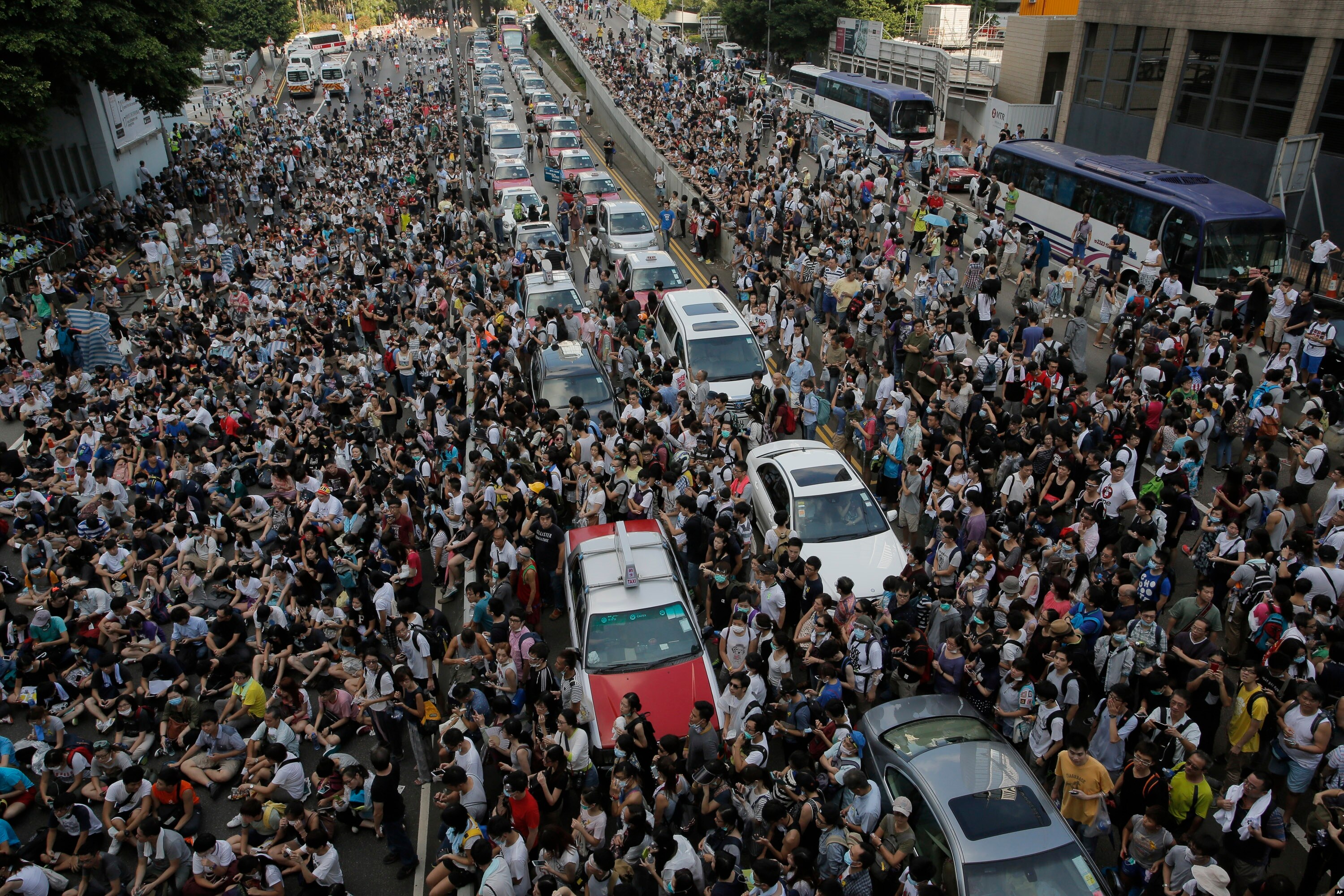 បាតុករស្ថិតនៅផ្នែកមួយនៃចលនាមិនស្តាប់បង្គាប់ស៊ីវិលដែលបាន អំពាវនាវឲ្យមានអន្តរាគមន៍(លូកដៃ)ខាងនយោបាយតិចជាងមុនពីរដ្ឋាភិបាល ទីក្រុងប៉េកាំងនៅក្នុងអតីតដែនដីអណានិគមអង់គ្លេសមួយនេះ៕