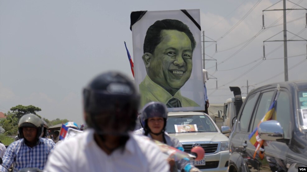| ប្រជាពលរដ្ឋរាប់ម៉ឺននាក់ចូលរួមជូនដំណើរលោកកែម ឡី នៅថ្ងៃអាទិត្យ ទី២៤ ខែកក្កដា ឆ្នាំ ២០១៦នេះ។សពអ្នកវិភាគនយោបាយឯករាជ្យលោក កែម ឡី ត្រូវយកទៅបូជានៅឯស្រុកកំណើតរបស់លោកនៅស្រុកត្រាំកក់ ខេត្តតាកែវ។ លោក កែម ឡីត្រូវឃាតករបាញ់សម្លាប់នៅថ្ងៃទី១០ ខែកក្កដាកន្លងទៅនេះ។ (ឡេង ឡែន/VOA) |