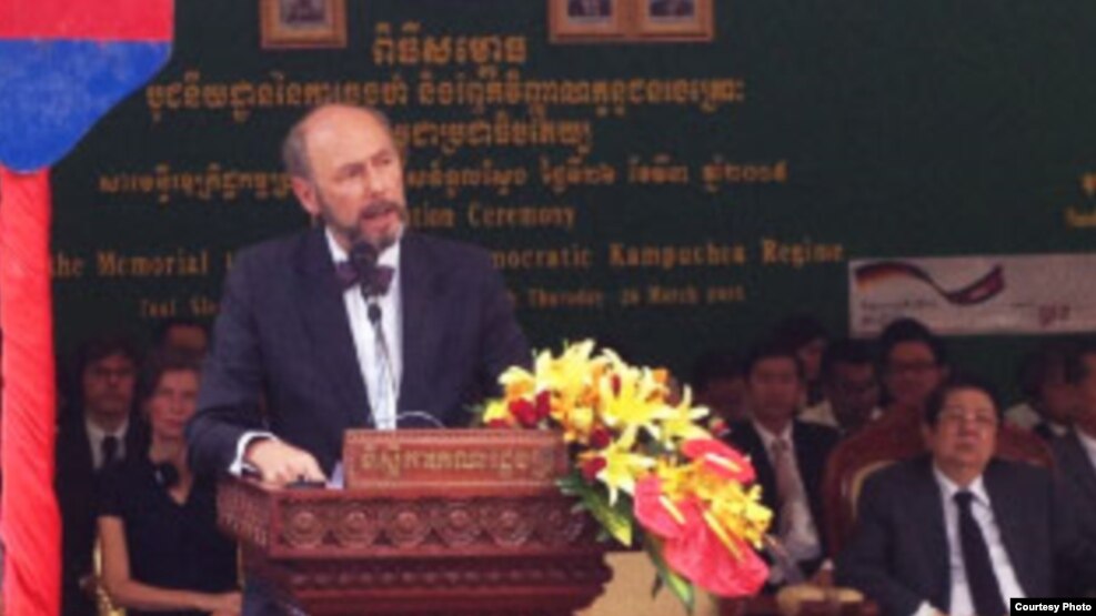 FILE - Joachim von Marschall, German Ambassador to Cambodia, participates in the inauguration of a commemorative stupa at the Tuol Sleng memorial site, Phnom Penh on March 26, 2015. (Courtesy of German Embassy Phnom Penh)