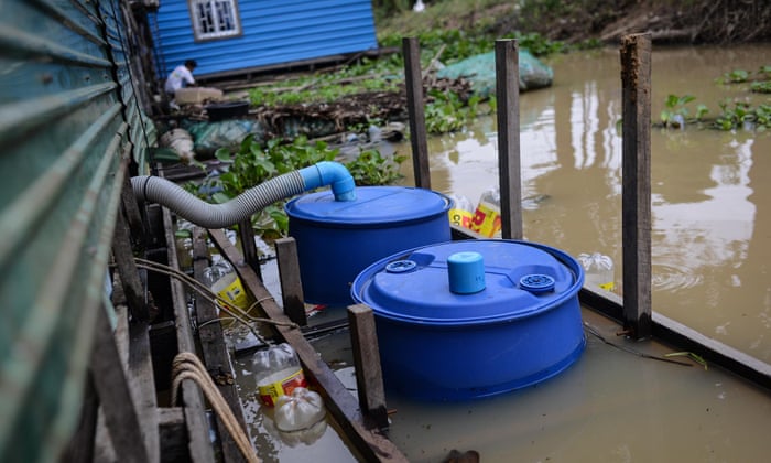 | The HandyPod system behind Hakley Ke’s floating house in Phat Sanday commune, on the Tonlé Sap lake. Photograph: Lauren Crothers for the Guardian |