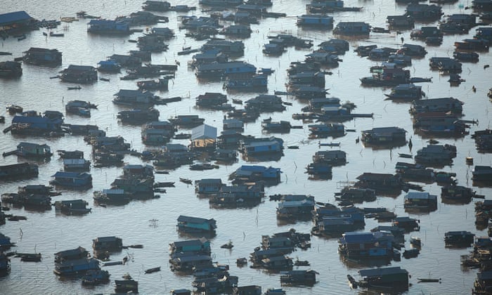 | Chong Kneas village, Tonlé Sap, near Siem Reap. Such villages often lack sanitation, with waste deposited directly into the freshwater lake. Photograph: David Wall/Alamy |