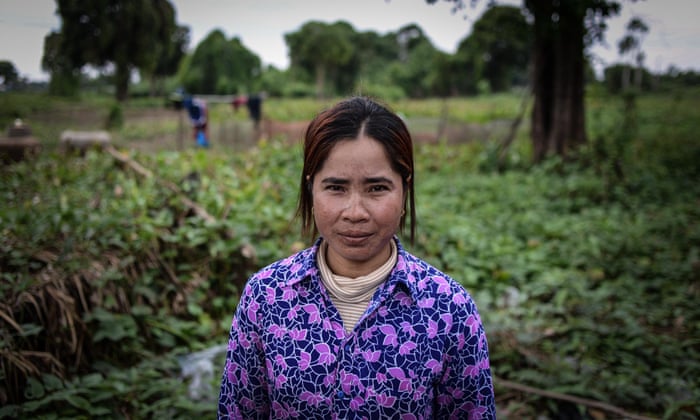 | Yun Thy, from Phat Sanday, in front of the forest edge where she used to defecate before she had the system installed in her home. Photograph: Lauren Crothers for the Guardian |