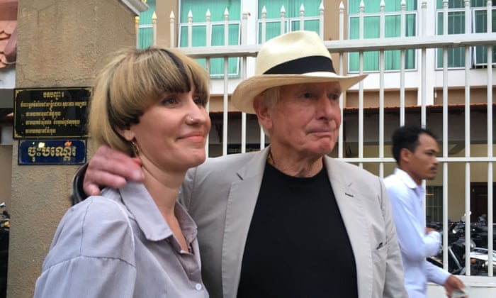 | Peter Weir and Alexandra Kennett, partner of James Ricketson’s son, after Weir testified in James Ricketson’s trial. Photograph: Suy Se/AFP/Getty Images |